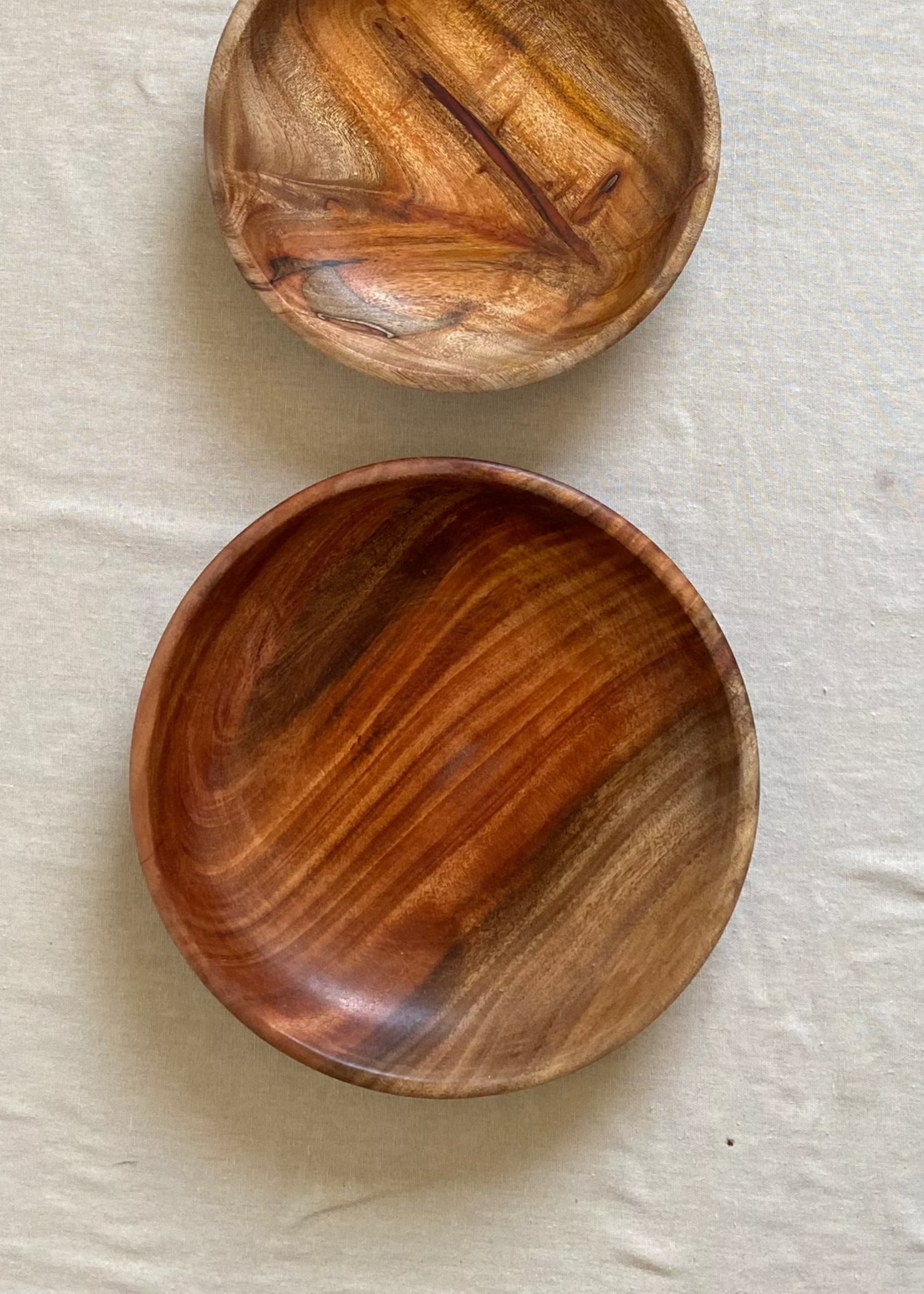 Set of 4 wooden dishes: 28,24,18,12cm in diameter with a 3cm depth